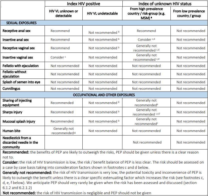 BASHH/BHIVA – Summary table of PEP prescribing recommendations