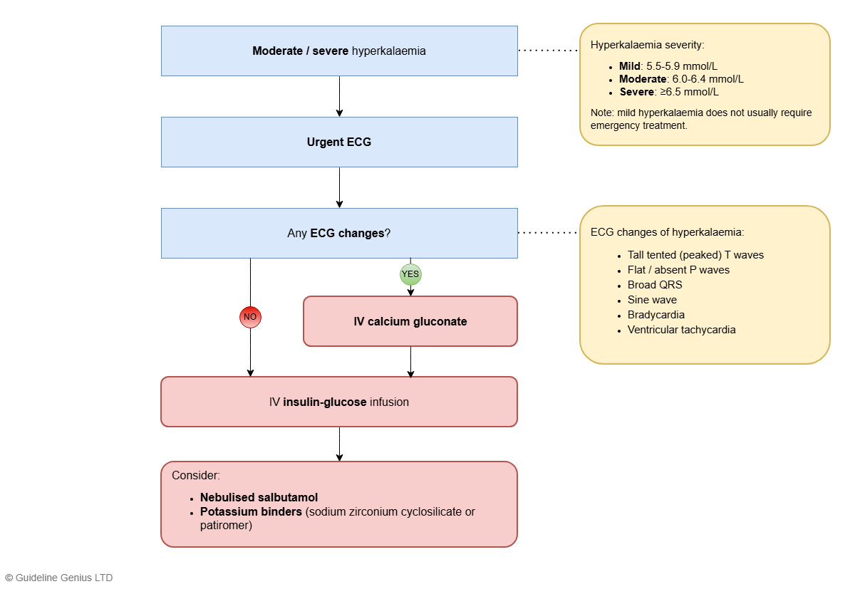 - If there is severe hyperkalaemia (≥6.5 mmol/L) → seek early senior input