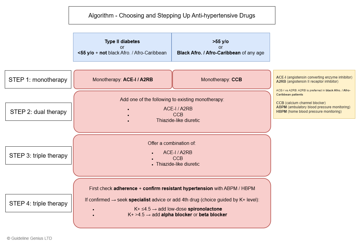- <55 y/o and NOT Afro-Caribbean → ACE-I / ARB