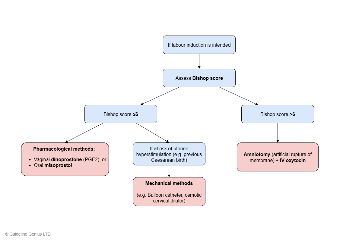 If labour induction is intended, the Bishop score is used to decide which method to use: